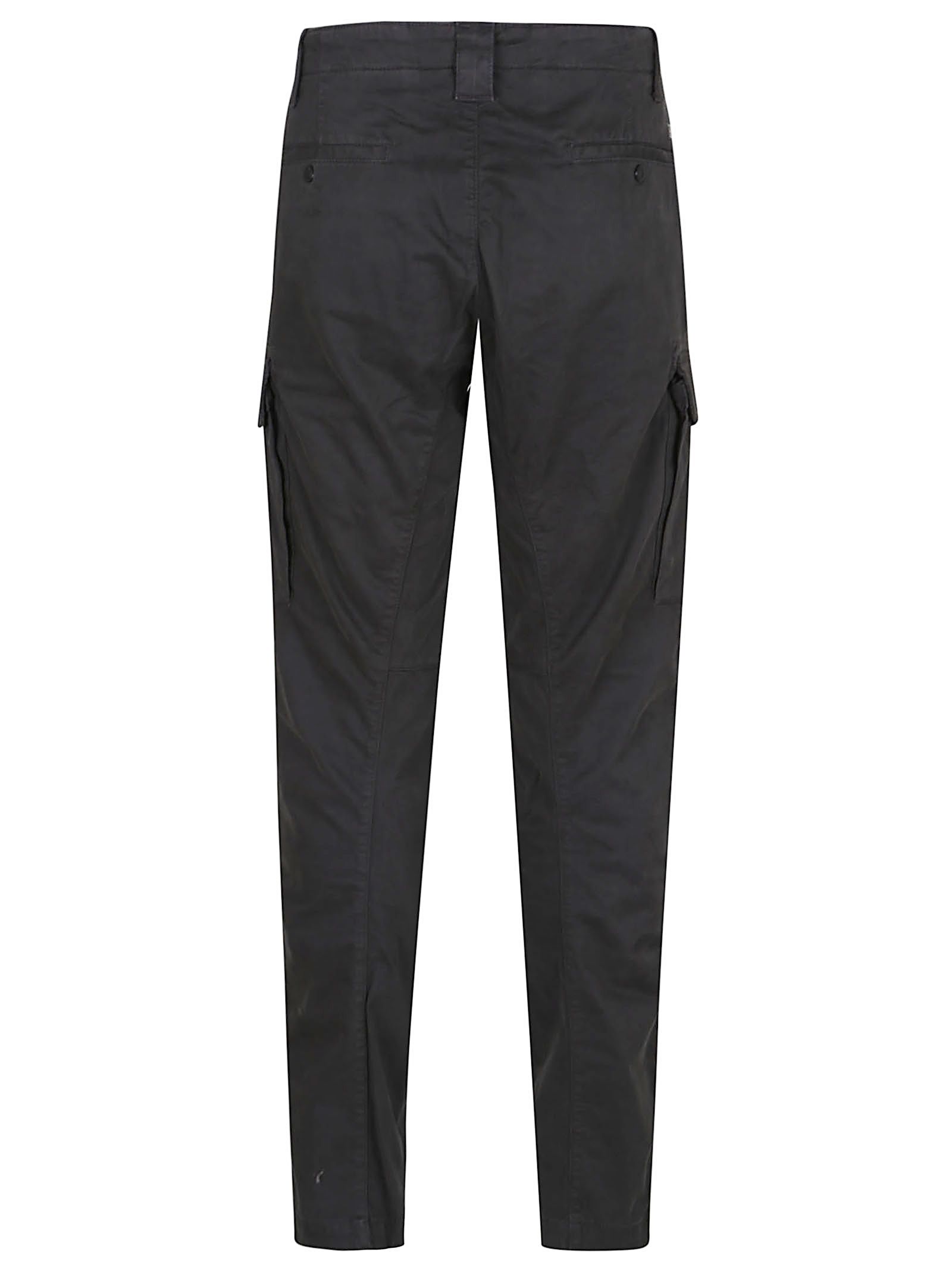 Pantaloni cargo in raso di cotone di CP COMPANY.Chiusura con bottone e zip; passanti per la cintura; tasche laterali e tasche cargo con patta e bottoni automatici.Caratterizzati da Lente di C.P. Company sulla tasca.