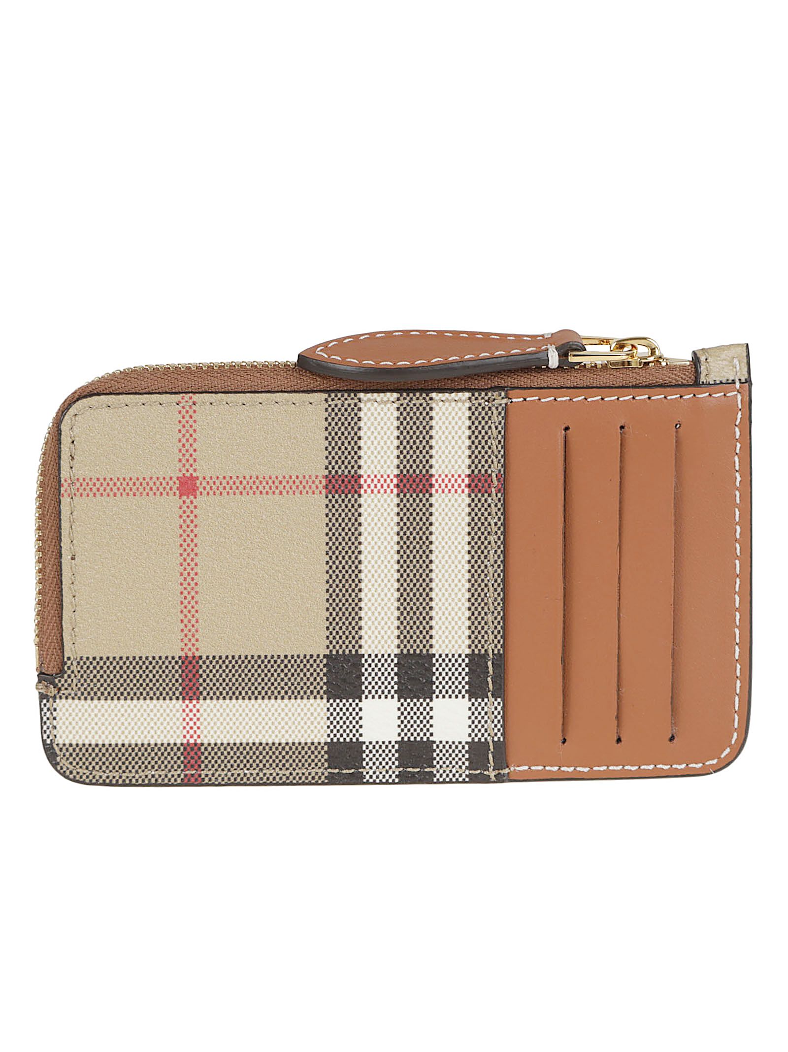 Porta carte di credito in misto cotone spalmato con stampa Burberry Check di BURBERRY.Interno in pelle di vitello liscia; chiusura con cerniera; tre scomparti per carte.