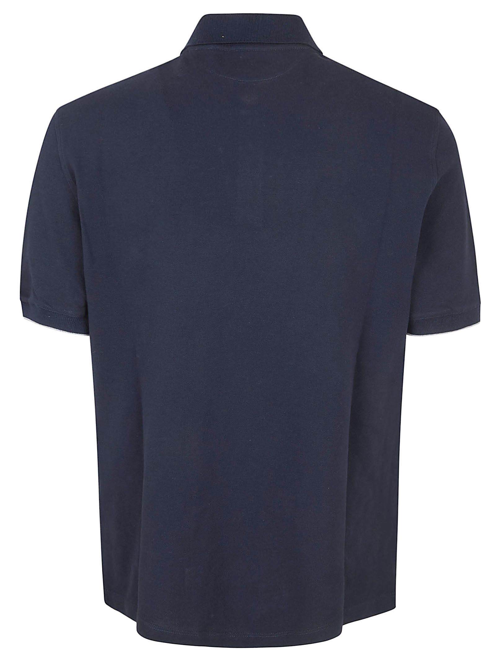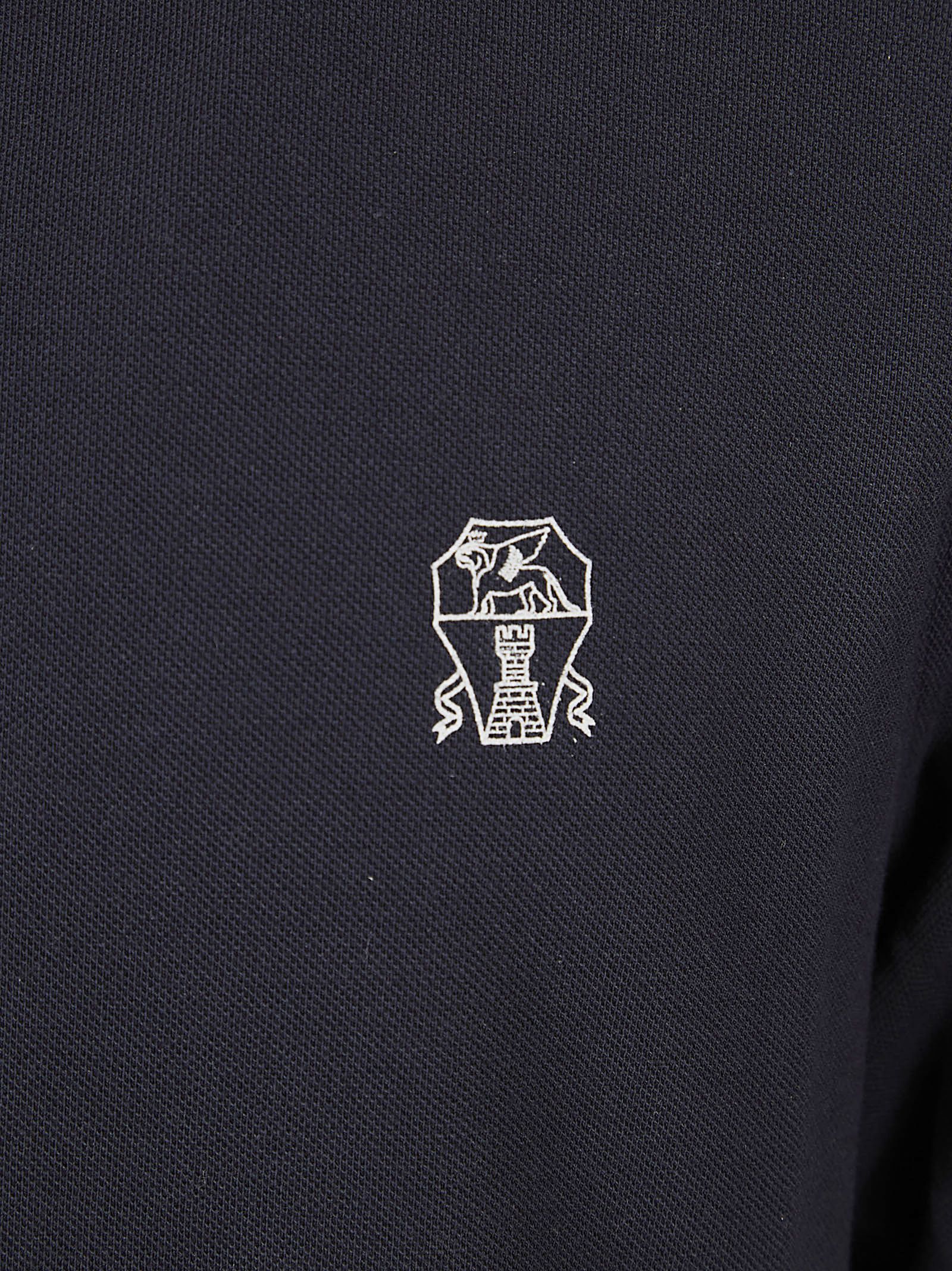 Polo in tessuto piquet di BRUNELLO CUCINELLI.Maniche corte; collo a camicia; polsini e fondo con orlo ribattuto e fondo con spacchi.Caratterizzata da logo araldico ricamato a contrasto.
