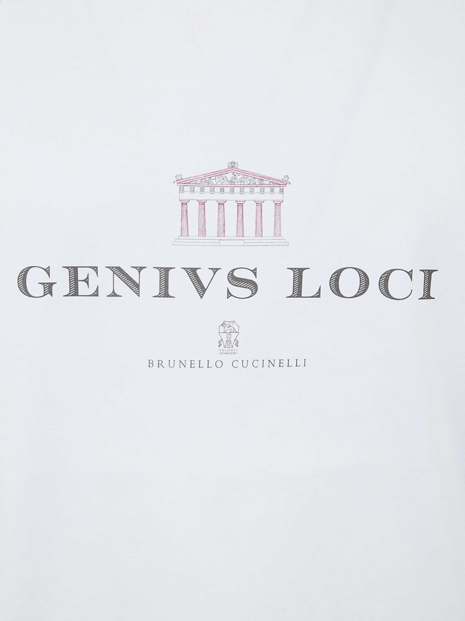 T-shirt in puro cotone di BRUNELLO CUCINELLI.Girocollo; mezza manica; maniche e fondo con bordi e orlo ribattuto; design vestibilità regolare.Caratterizzata da "Genius Loci" indica il carattere di un luogo, la sua identità in relazione alle persone che lo abitano e alla sua storia; celebrando il legame tra architettura e cultura attraverso la stampa di stagione dedicata.