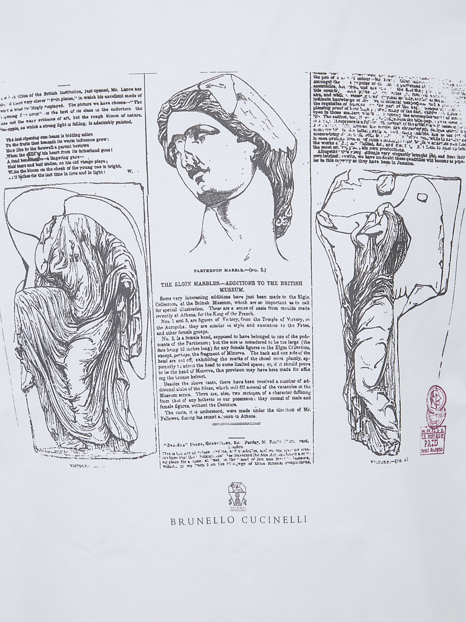 T-shirt in puro cotone di BRUNELLO CUCINELLI.Girocollo; mezza manica; polsini e fondo con orlo ribattuto; design vestibilità regolare. Caratterizzata da ispirazione artistica nella stampa di stagione, che trae ispirazione dalle statue del Partenone e dall`arte dell`antica Grecia.