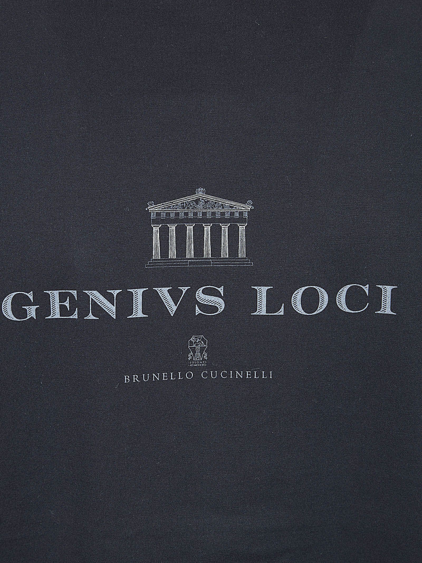 T-shirt in puro cotone di BRUNELLO CUCINELLI.Girocollo; mezza manica; maniche e fondo con bordi e orlo ribattuto; design vestibilità regolare.Caratterizzata da "Genius Loci" indica il carattere di un luogo, la sua identità in relazione alle persone che lo abitano e alla sua storia; celebrando il legame tra architettura e cultura attraverso la stampa di stagione dedicata.