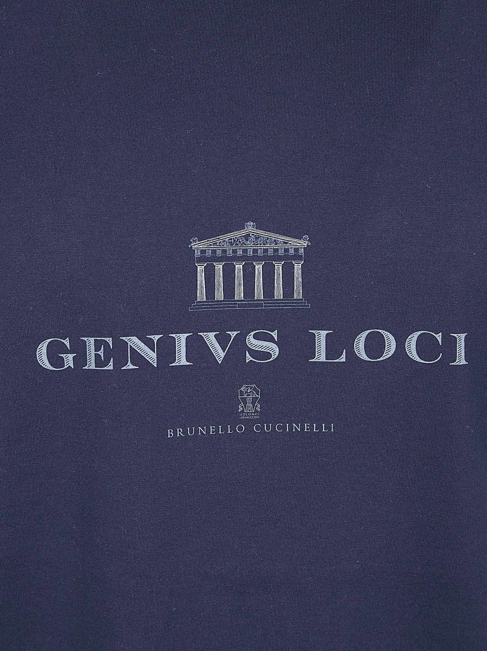 T-shirt in puro cotone di BRUNELLO CUCINELLI.Girocollo; mezza manica; maniche e fondo con bordi e orlo ribattuto; design vestibilità regolare.Caratterizzata da "Genius Loci" indica il carattere di un luogo, la sua identità in relazione alle persone che lo abitano e alla sua storia; celebrando il legame tra architettura e cultura attraverso la stampa di stagione dedicata.