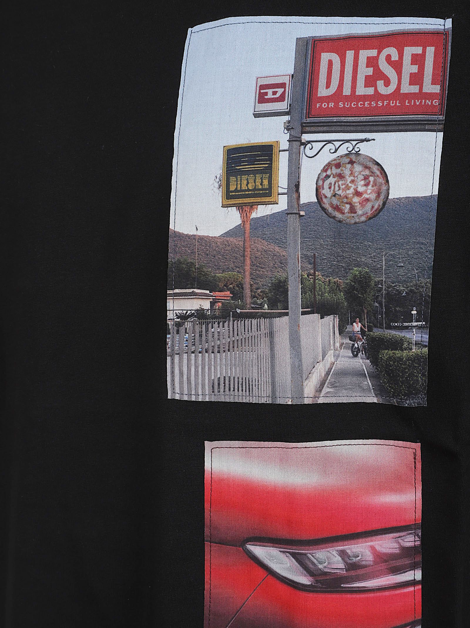 Tshirt in jersey di cotone biologico di DIESEL.Mezza manica; girocollo; design vestibilità relaxed.Caratterizzata da patch fotografiche tagliate a vivo che combinano diversi loghi Diesel.