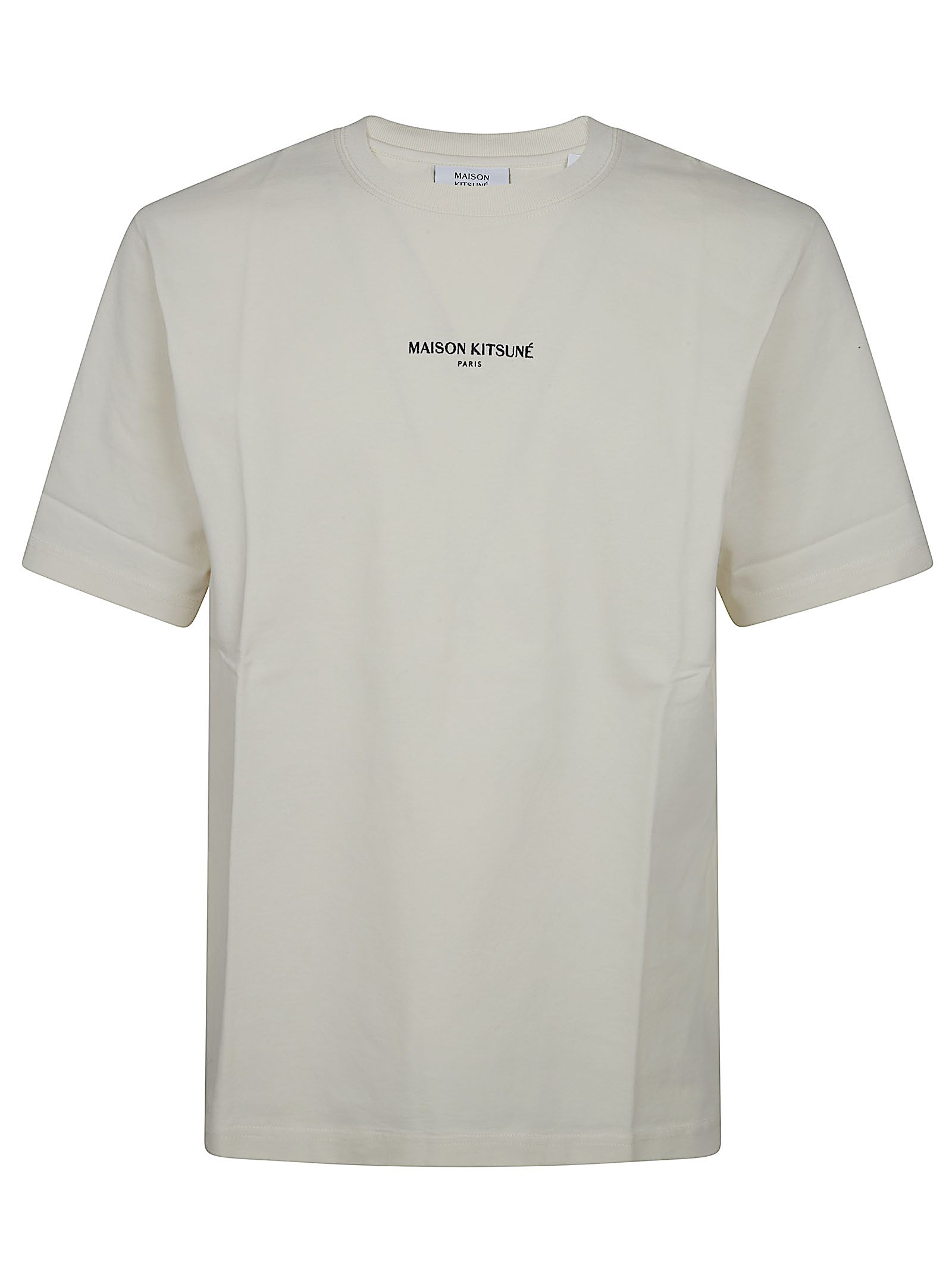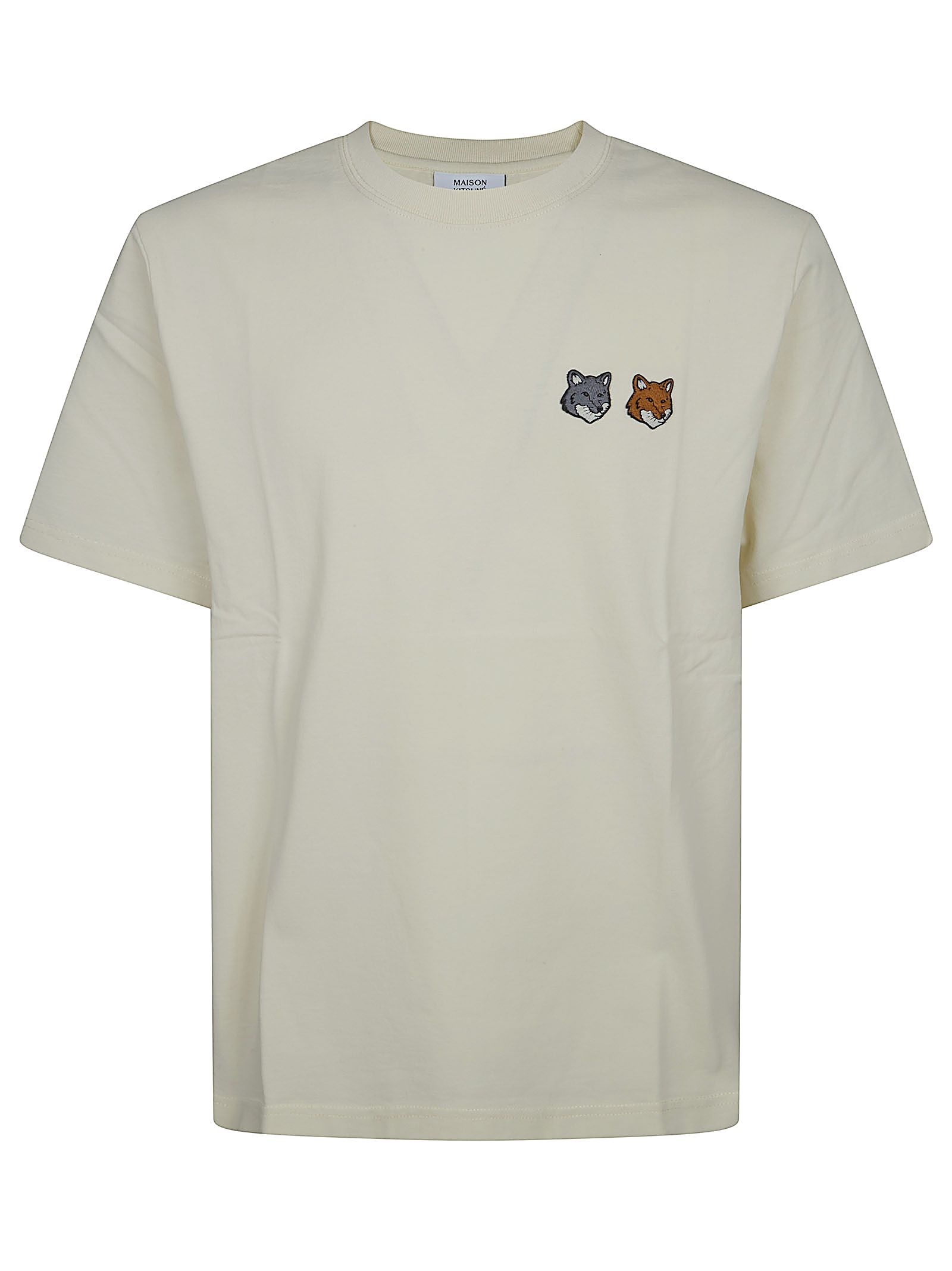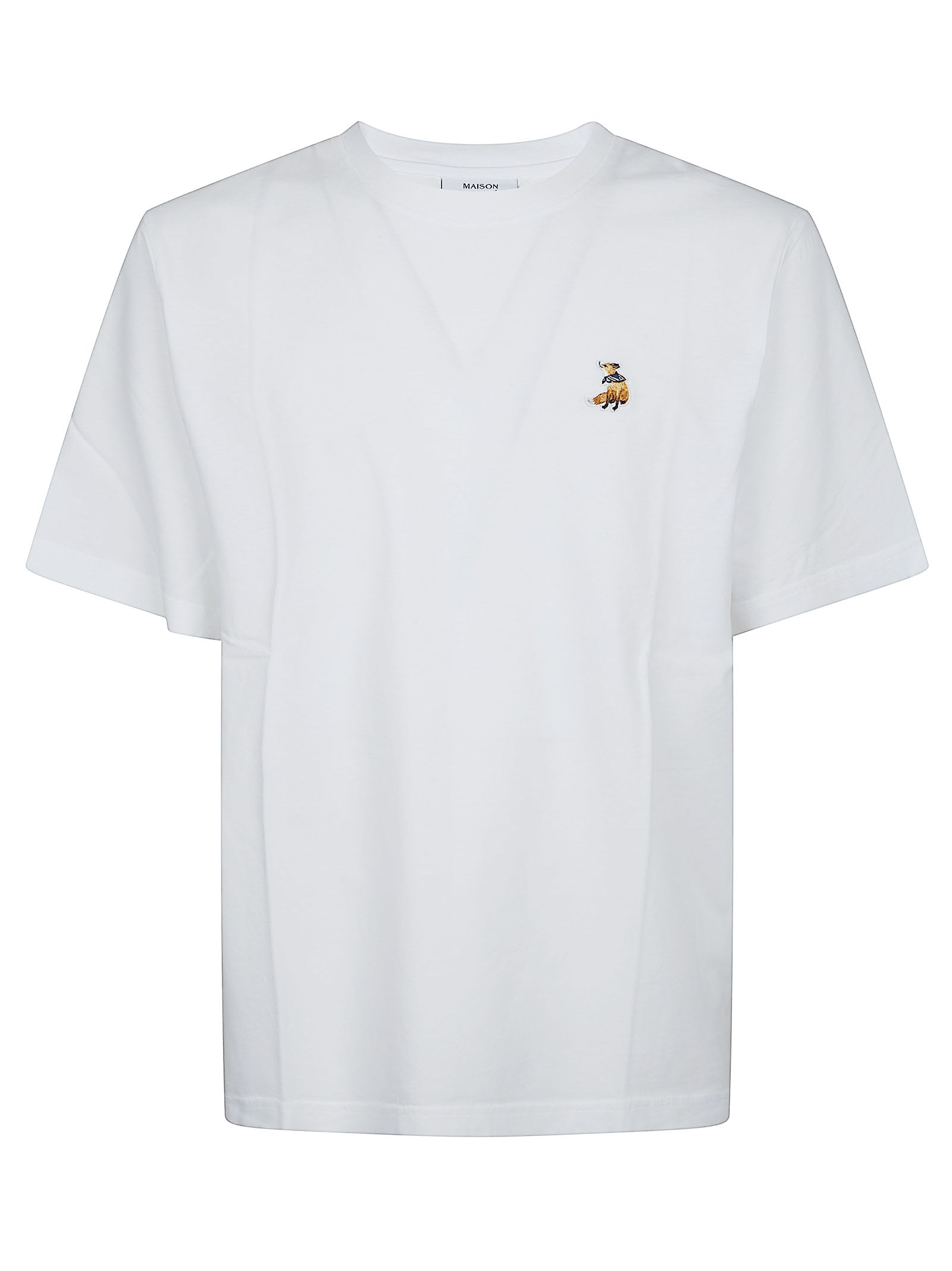 T-shirt in classico jersey di cotone di MAISON KITSUNE.Girocollo con costine; mezza manica; design vestibilità comoda.Caratterizzata da toppa ricamata Dreaming Fox sul petto.