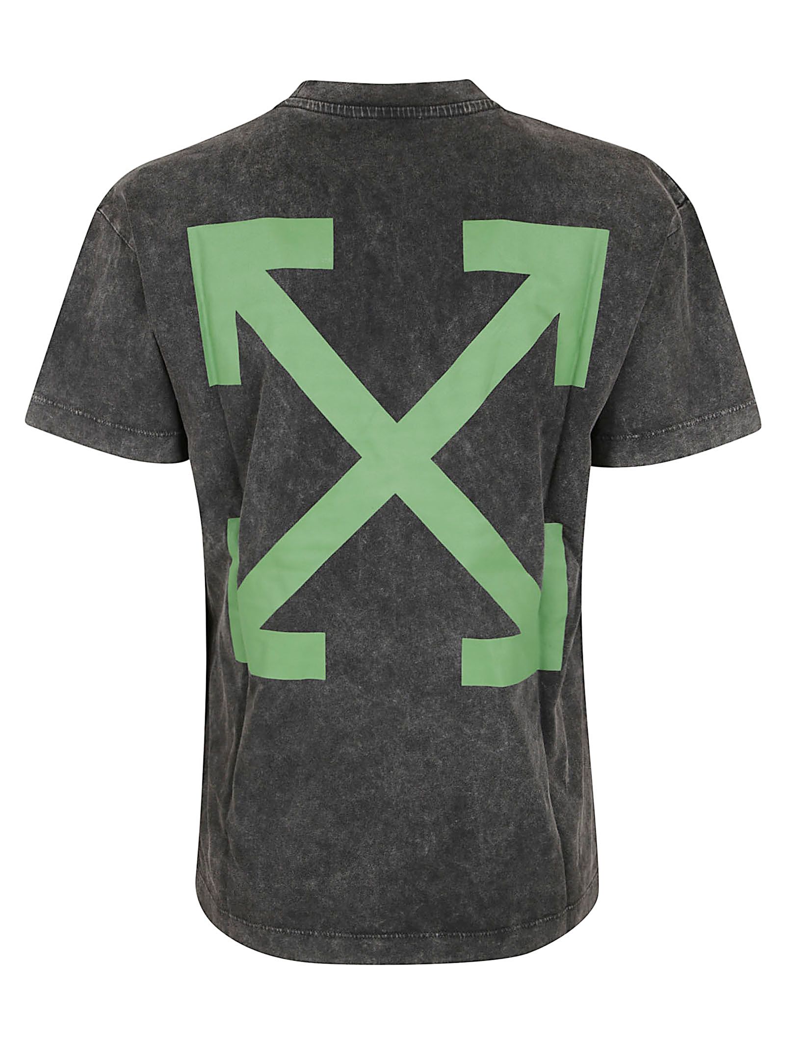 grigio effetto lavato stampa grafica davanti e dietro collo rotondo maniche corte
