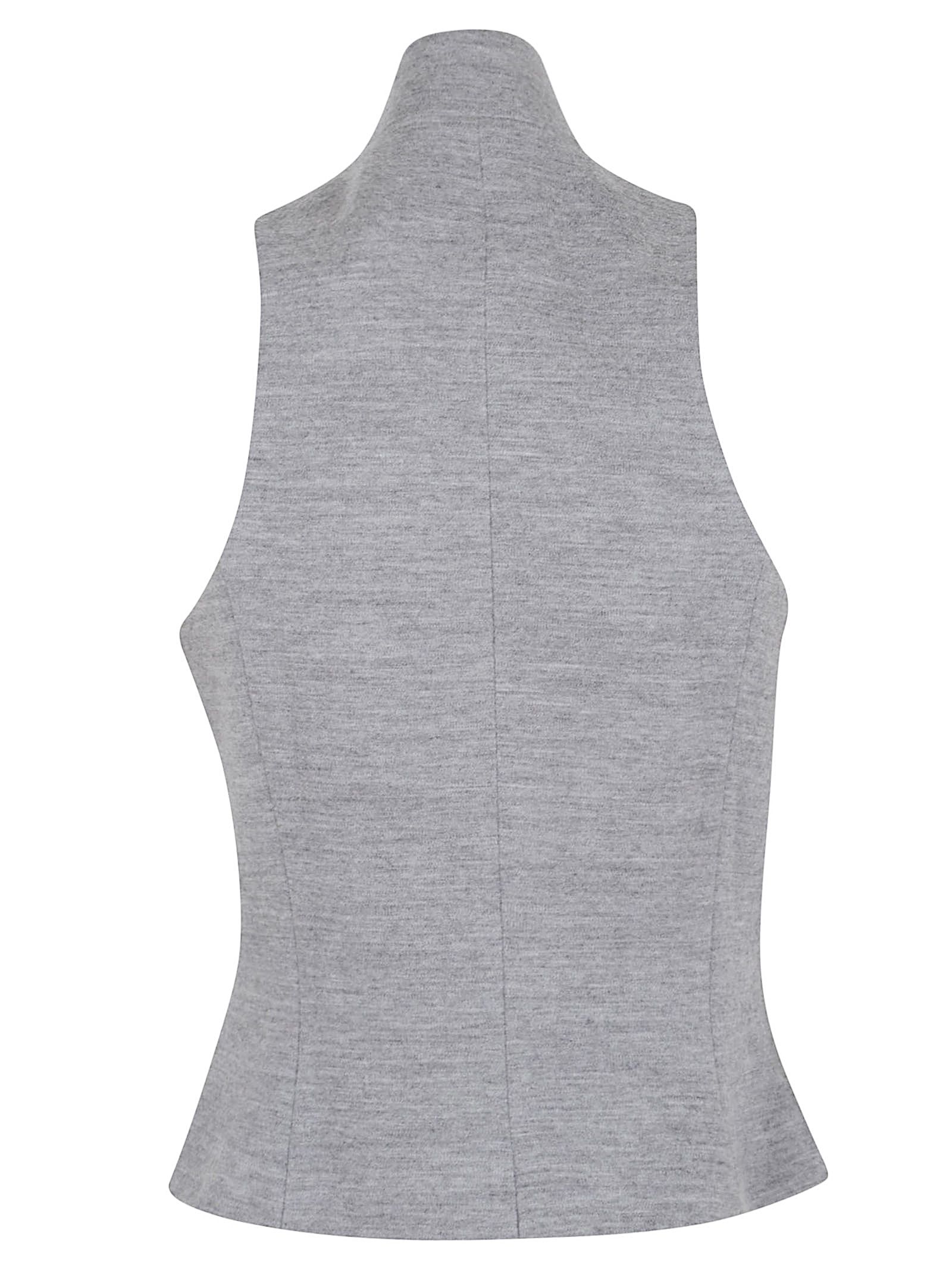 Top in misto lana di BALMAIN.Collo alto; senza maniche; design vestibilità aderente. Caratterizzata da zip a vista sulla lunghezza e cursore grande con incisione Balmain Paris.