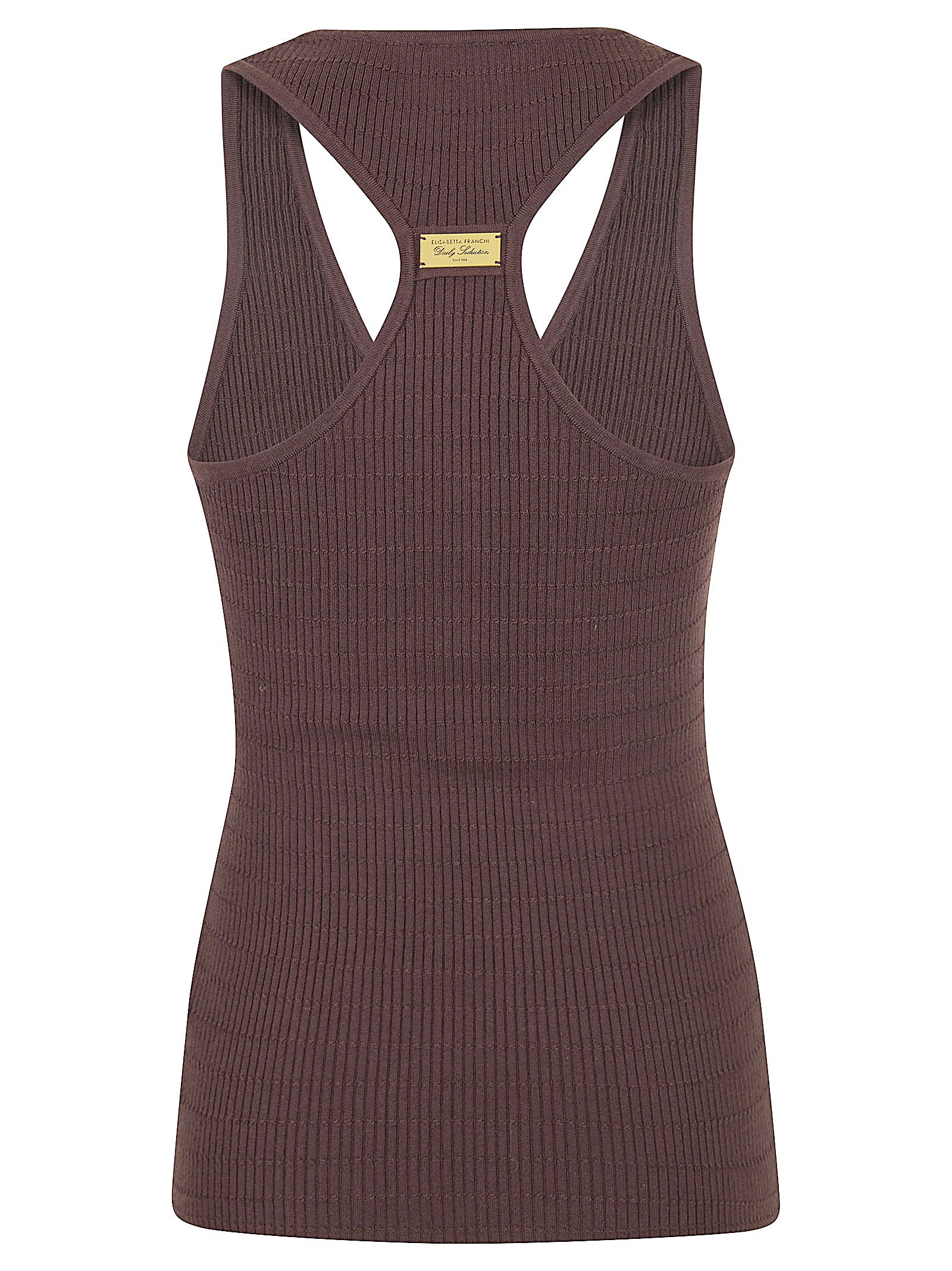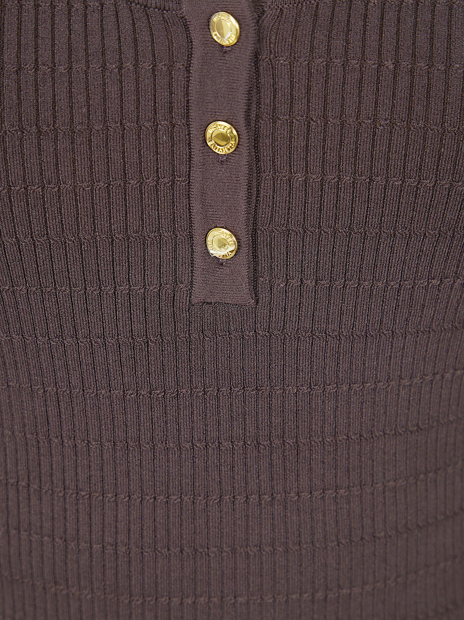 Top in maglia di ELISABETTA FRANCHI.Scollo olimpionico; design vestibilità aderente che segue le forme del corpo.Caratterizzato da trama movimentata da costine a micro-trecce, bottoni in metallo dorato e dettaglio in metallo dorato con logo e lettering.