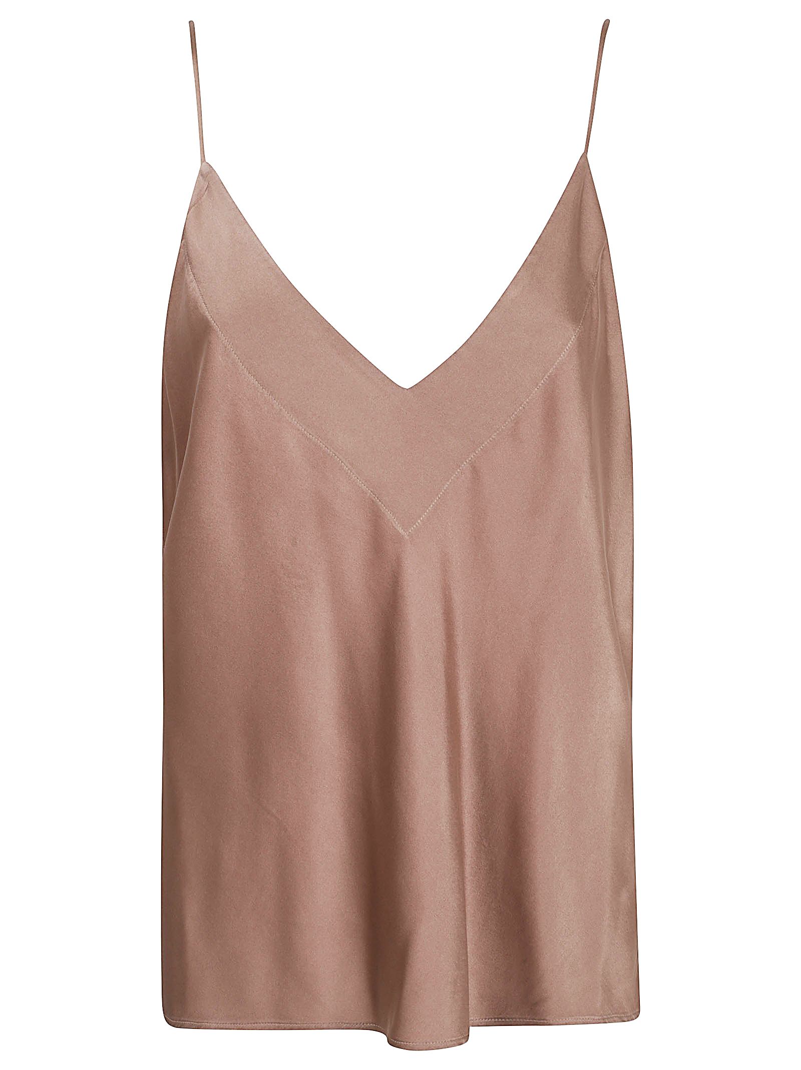 Top rosa senza maniche con scollo a V e spalline sottili.Abbinabile al suo pantalone .