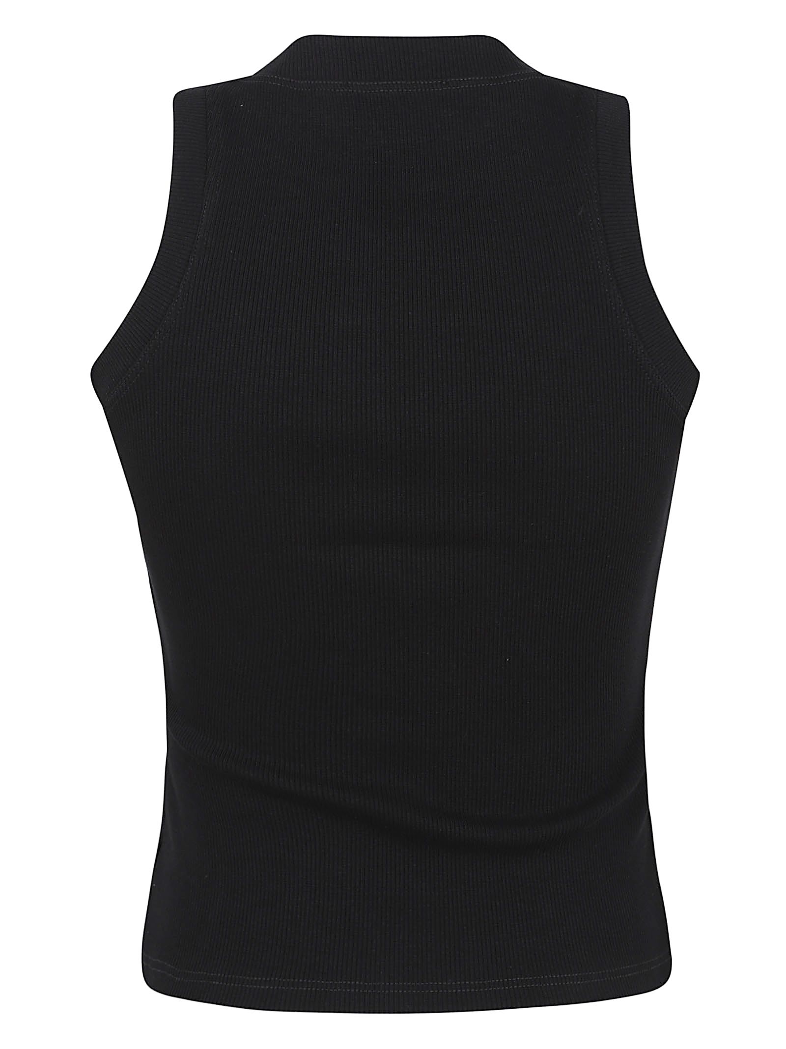 shirt smanicate in cotone a costine nera girocollo logo ricamato sul davanti