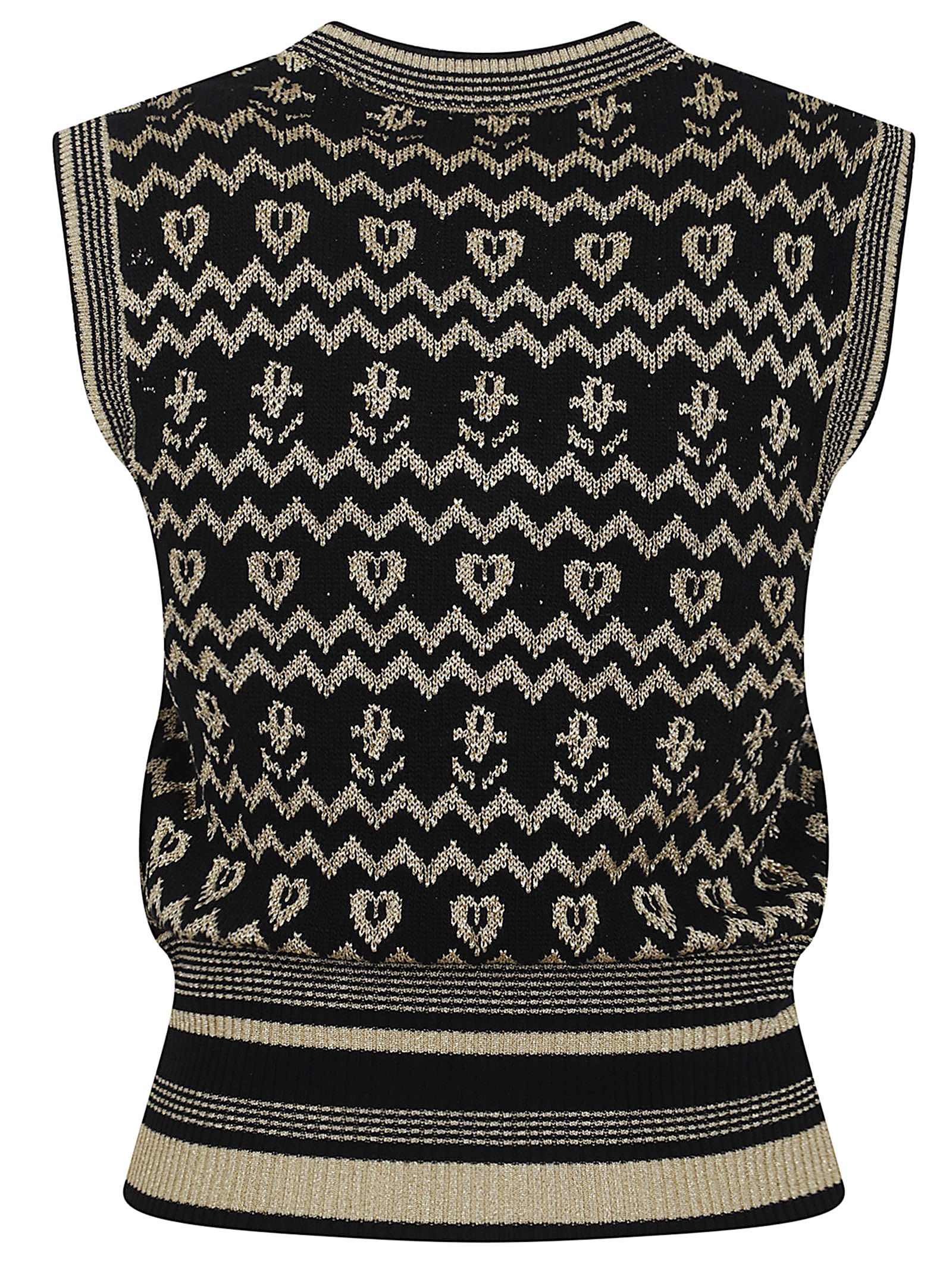 Gilet in lana di VALENTINO GARAVANI.Scollo a V; senza maniche; design vestibilità regolare; profili lavorati con elastico a costine. Caratterizzato da disegni metallizzati a contrasto.