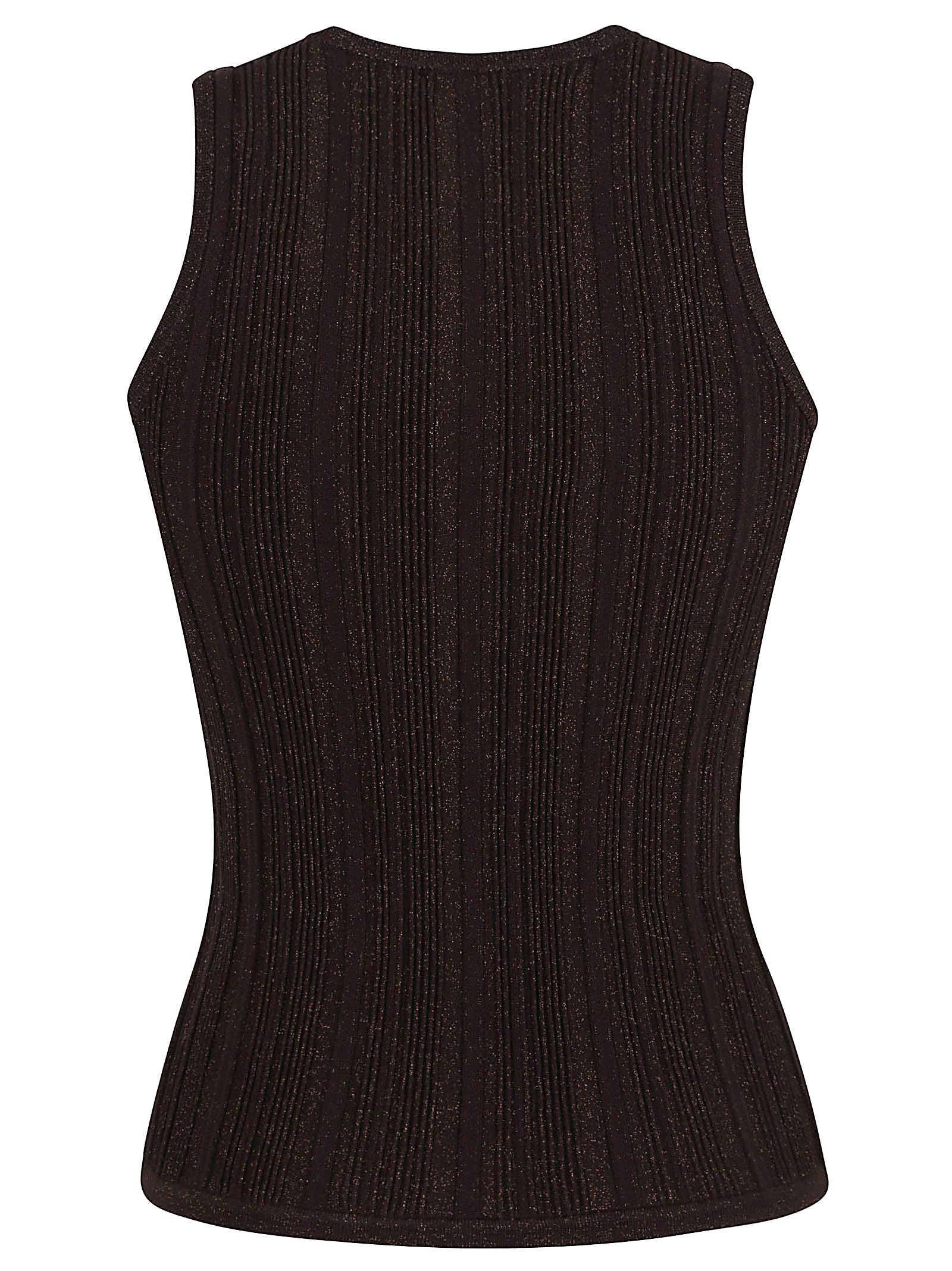 Canotta Lucky Metallic Racer in maglia di ZIMMERMANN.Girocollo; senza maniche; design vestibilità slim che segue le forme del corpo. Caratterizzata da finitura metallica.